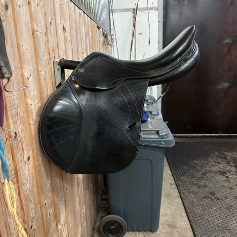 Vähän käytettynä ostettu ruskea Prestige Versailles W estesatula. Käytetty kakkossatulana puolisen vuotta, sen jälkeen kotona satulapukin päällä, hevonen lopetettu ja satula jäi ylimääräiseksi.