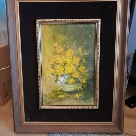 Kuvan taulu, pientä kulumaa sivuilla, muuten hyvässä kunnossa, leveys 28cm, korkeus 35cm ja paksuus 2cm. Koirakoti.