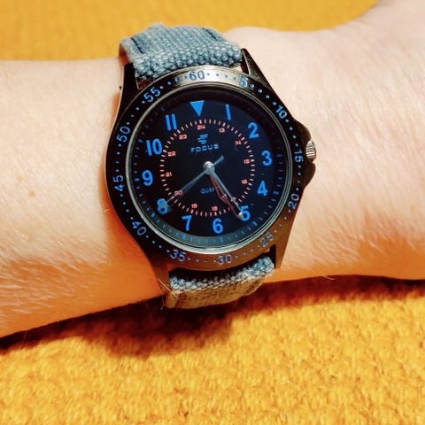 Myynnissä "kullattu" naisten Focus merkkinen rannekello. Kellosta patteri loppunut maksaa liikkeessä vaihto 10-15€