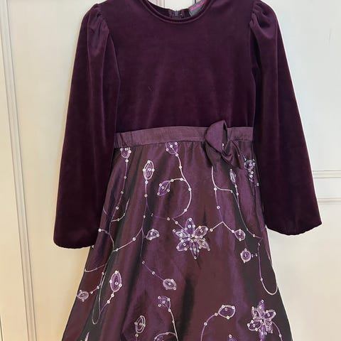 Kaunis hihaton juhlamekko. Koko 5 vuotta elii 110/116. Yläosassa konekirjailu ja helmiä. Satiinialaosa ja sifonkinen pääliosa.