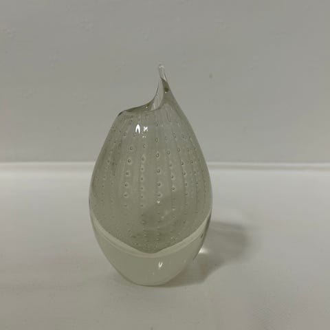 Humppilan lasin Lumme astia / tuhkakuppi. Kaija Aarikan suunnittelema. Korkeus 2.5 cm ja halkaisija 13.5 cm. Tarkka silmä voi huomata muutaman ihan pienen nirhaman (kts kuvat).