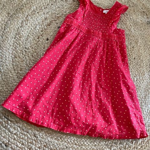 Pinkki mekko, aukeaa takaa kokonaan napeilla. Vyöyäröllä nauha. Koko 116 cm.