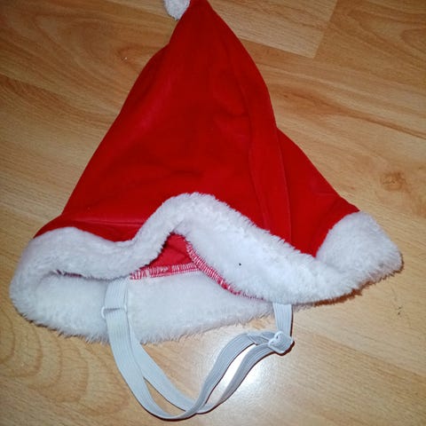 Myydään käyttämätön Little Bigger tonttulakki pienelle lemmikille. Lakissa on joustava, säädettävä leukanauha. Ympärysmitta on n. 30 cm. Pesu 30°C.