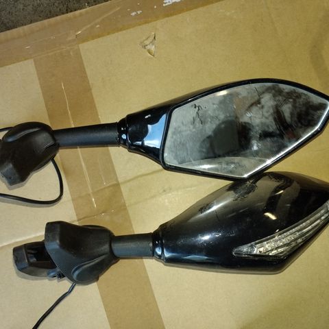 Myydään peilit (vasen ja oikea) led-vilkuilla. Peilin kokopituus varren kanssa n.35cm.