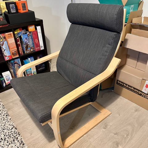 Example of same armchair from ikea website: https://www.ikea.com/fi/en/p/poaeng-armchair-and-footstool-black-brown-glose-eggshell-s39551072/