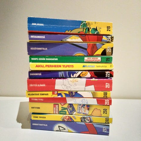 Aku Ankan taskukirjat nrot 350 ja 333. Molemmat käytettyjä ja 350 takakansi revennyt, mutta edelleen kiinni.