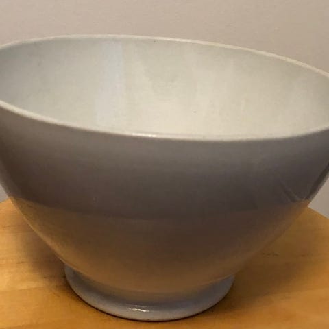 Vanha kulho, ei leimoja. Halkaisija 26 cm, korkeus 16 cm. Vetoisuus 4,5 litraa.