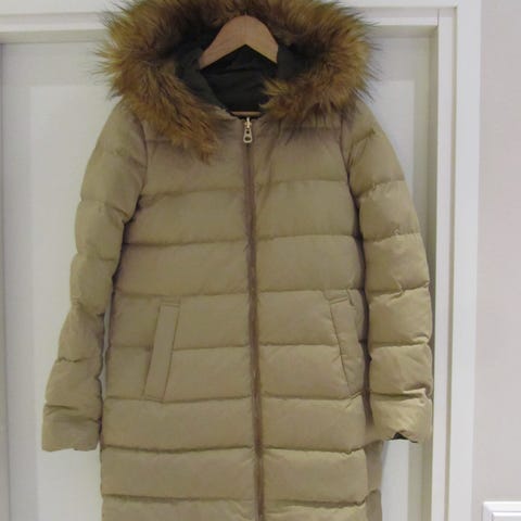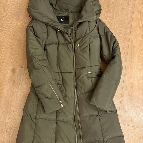 Zaran tumma vihreä (ruskeaan taittuva) untuvatakki. Koko Espanjan S eli vastaa Suomen XS. Sivutaskut, vetoketju sekä nepparit. 70% untuvaa ja 30% höyhentä. Erittäin hyvässä kunnossa, vähän käytetty, mutta toisen taskun alareunasta oli hieman purkautunut ommel, se on siististi ommeltu eikä sitä erota, (ks. kuva) .Vyö puuttuu (heitetty epähuomiossa pois :/), tämä huomioitu hinnassa. Muun vyön voi hyvin laittaa tilalle. Pesty hajusteettomalla pesuaineella.