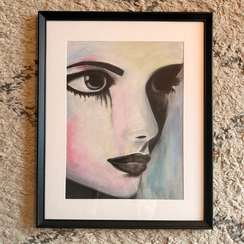 Olen ostanut työn Pariisista suoraan taitelijalta. Kehystys on tehty Suomessa Seven Art liikkeessä ja siinä on käytetty UV-säteilyltä suojaavaa lasia.