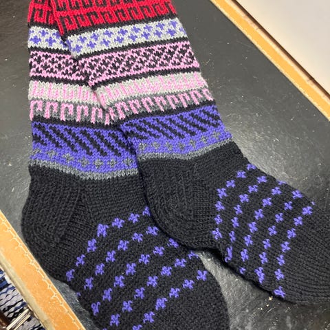 Myydään Novitan Nalle-langasta neulotut sukat. Koko 38. Vain nouto.