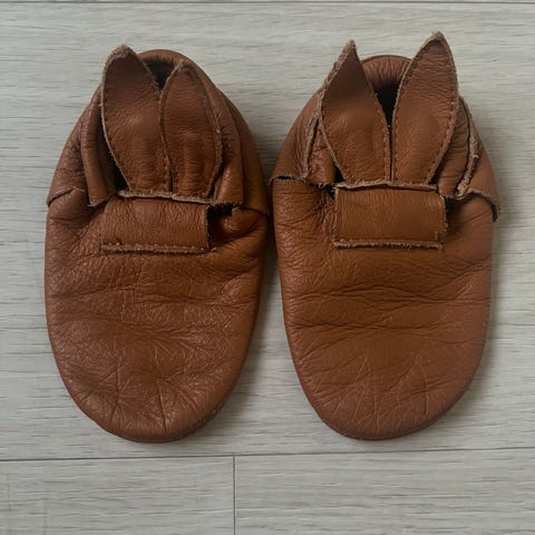 Mustat mokasiinit, kerran pesty, pehmeät mutta ei niin pehmeät kun pupu tossut. Yhden tossun kärjessä vaatelaastari kun sauman kohdalla alkoi tulla mini reikä.