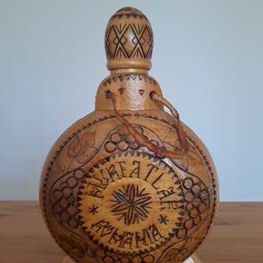 Kuvanmukainen neulottu pullon päällinen/koriste esim. glögipullolle tai viinille. Uusi, käsinneulottu.