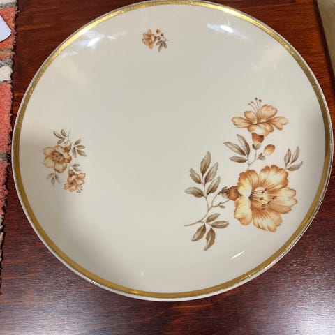 Vintage, retro, Arabia, Myrna, posliini, 1930-luku, serikuva, kukka-aihe, tarjoiluastia, tarjoilu, lautanen, tarjoilulautanen, Suomalaista käsityötä, Finland design