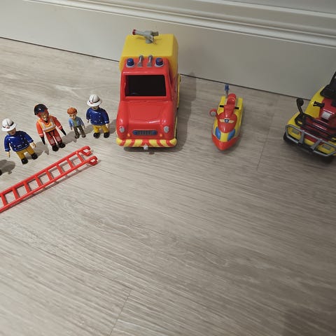 Hyväkuntoinen ohjelmoitava palomies Sami paloauto. Vähän leikitty.