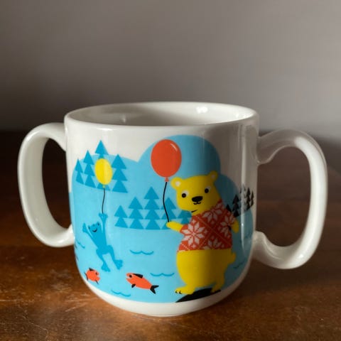 Arabia lysti muki Kettu vaaleanpunainen ja Pupu vihreä