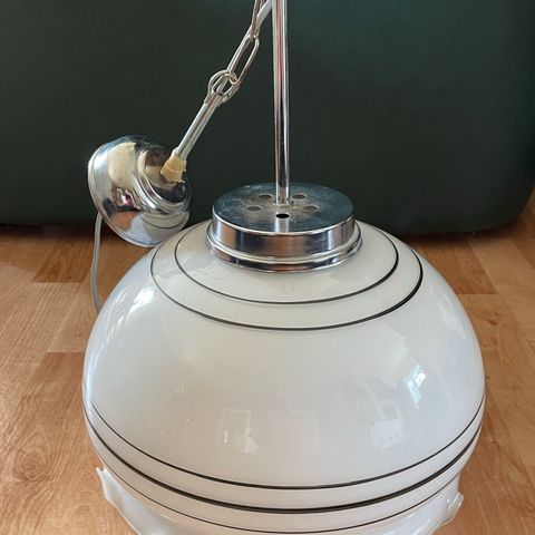 Valaisimessa erikoinen kauniisti kullalla kirjailtu lamppu. Kattopistoke.