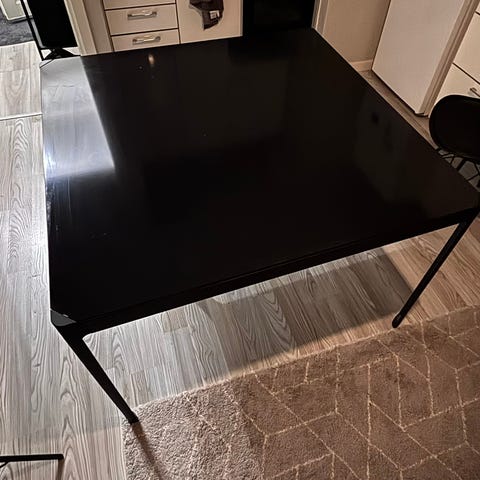 Spazio Oulu ostettu laatu ruokapöytä. Lasi pinnassa pieni huomaamaton naarmu. Muutoin hunto hyvä. Lasin paksuus noin 15 mm paksu.