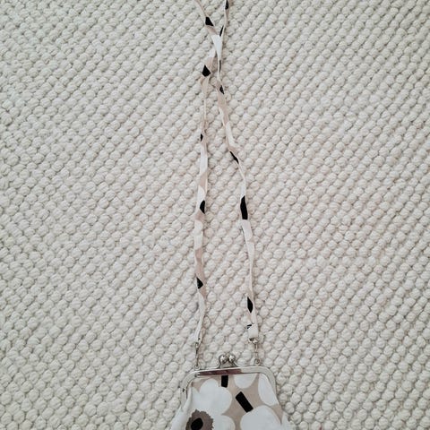 Myydään uudenveroinen Marimekon kukkarolaukku hihnalla.