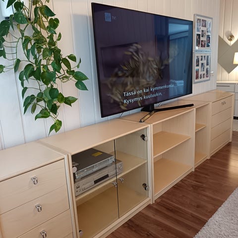 Hylly on muunneltavissa,lokerikon voi ottaa irti. Alalaatikoista voi tehdä vaikka TV-tason, jonka syvyys on 50sm.