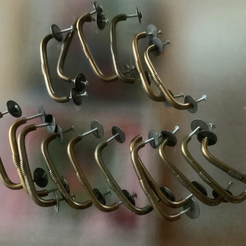 Abloy ovenkahvat palautusjousilla, hinta 15 euroa. Lähetys 8,90 euroa tai nouto ja maksu käteisellä.