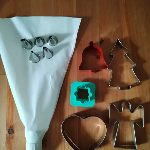 *Käyttämätön pikkuleipäpursotin paketissa: 6 suutinta, 6 muottia, pursotin. H. 5e.