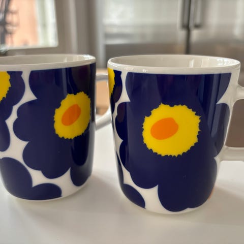Pesty käyttöä varten, mutta eivät tulleet käyttöön. Perheen mielestä Muumi-mukit ovat paremmat….