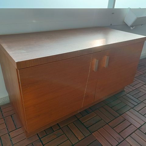 Metallijalkainen tukeva tv-taso, jossa kaksi liukuvaa tummennettua lasiovea ja kaksi hyllytasoa. Takana läpivientireiät johdoille, mukana peitepala. Mitat korkeus 60cm, leveys 97cm ja syvyys 50cm.