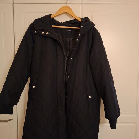 Muhkeassa ja lämpimässä takissa on irrotettava huppu ja vetoketjulliset etutaskut.
