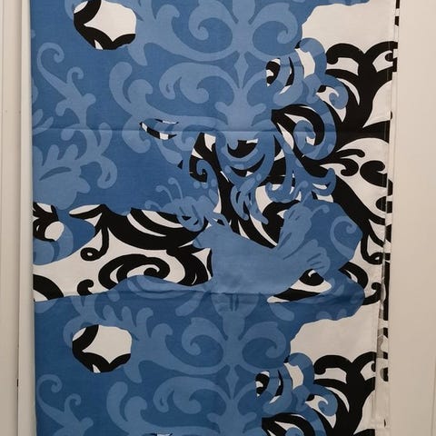 Kuvan vallilan aamuyö kuosia olevat verhot