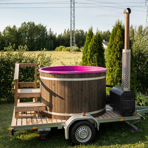 Vuokralle tarjotaan kylpypalju puukaminalla. (lämmitysaika puista ja veden lämpötilasta riippuen noin 3h)