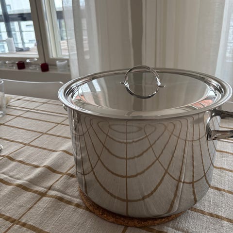Korkealaatuisesta, ruostumattonta 18/10 terästä. Kannessa höyryreiät.