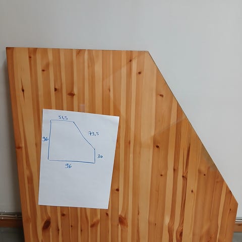 2 x kulmapöytälevy 96x96 cm, jalka 69 cm, säädettävä jalka 69-75 cm, avotikas 60x78 cm, tikas valkoisella täytelevyllä 60x78 cm