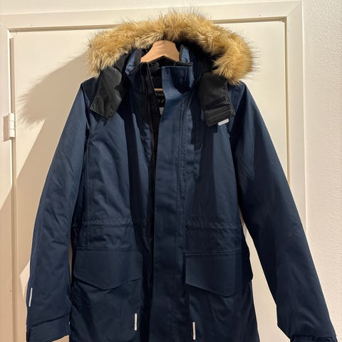 Myydään erittäin hyväkuntoinen tummansininen talvitakki kokoa 158 cm. Hupussa ruskea karvareunus, jonka saa halutessaan irti, myös huppu on irrotettava. Takki ostettu uutena Prismasta ja ehti olla käytössä vain pari kuukautta.