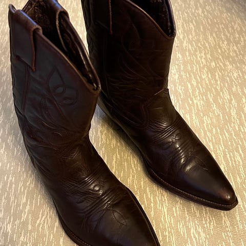 Kokomerkintä on 10 ja leveys D, eli kapeahko lesti. Vastaa suunnilleen EU-kokoa 43 tai 43,5. Aika vähän käytetyt ja hyvä kuntoiset, mutta nahassa jonkin verran naarmuja ja kulumaa kuten kuvista näkyy. Sisä- ja ulkopohjat hyvin vähän kuluneet.