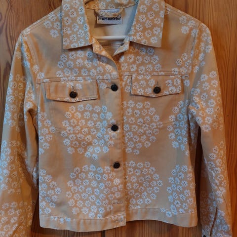 Marimekko talvitakki. Kokoa ei ole näkyvillä, mutta oletettavasti M. Voidaan ottaa tarkempia mittoja tarvittaessa. Ollut ainoastaan ns. juhlakäytössä eli käyttökerrat vähäiset. Ihana kaulus ja miellyttävä kangas.