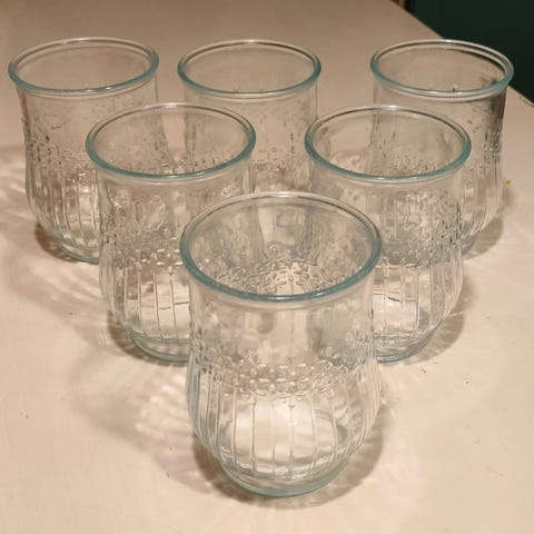 Ovat poistuneet tuotannosta vuosikymmeniä sitten. Muutamassa lasissa huomaamattomia naarmuja, vanhat kun ovat.