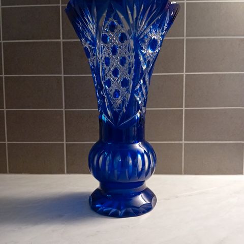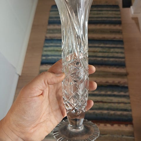 Todella hieno kristallimaljakko. 41 cm korkea ja 4 kiloa painava.