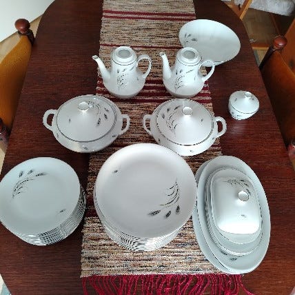 Käyttämättömiä. Juuri käsin pesty, mutta saattaa löytyä hintalapun jäänteitä. Western germany. Kultareunus siisti.