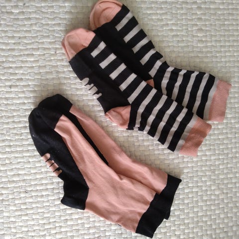 Papu merkin sinapinkeltaiset polvisukat, joissa mustan sävyisiä puoliympyröitä. Pohjan pituus 13 cm. Joustaa hyvin.