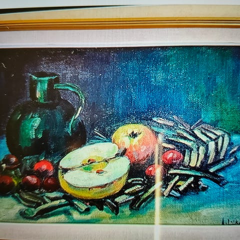 Öljyvärityö klassisesta asetelmasta mahtavilla kehyksillä, joissa on kyllä lohkeamia. Työ on kunnossa. Voi pitää raffina klassikkona tai sitten modernisoida. Työ 55x36 cm. Kehykset 71x51 cm.