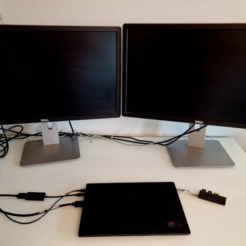 Myynnissä 2 kappaletta Dell 12417H näyttöjä näytönvarsilla.