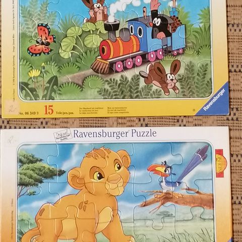 Myydään palapelipaketti, johon kuuluu kaksi 24 palan palapeliä. Kaikki palat on tallessa. Lapsi sai tämän lahjaksi ja kokosi palapelit vain muutaman kerran (ne osoittautuivat hänelle liian helpoiksi). Palapelien kunto on siis todella hyvä, uudenveroinen.