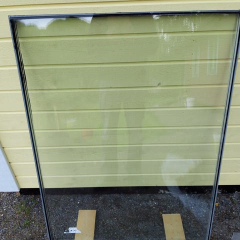 Lämpölasi ikkunat. Leveys: 1230mm, korkeus: 1490mm, karminsyvyys ensimmäisessä ikkunassa 131mm ja toisessa 170mm. 339e kpl, molemmat ikkunat yhteensä 678e. Vain nouto.