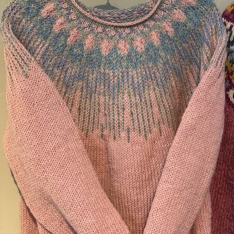 Käsin kudottu villapaita koko n.44 pitkähkö malli.
