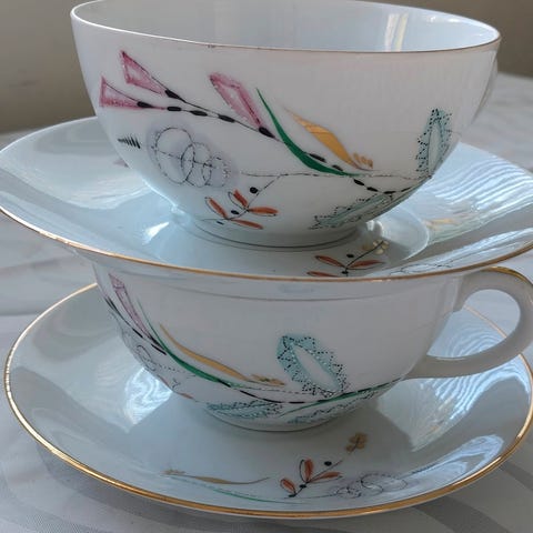 Myydään kaksi englantilaista kaunista teemukia.