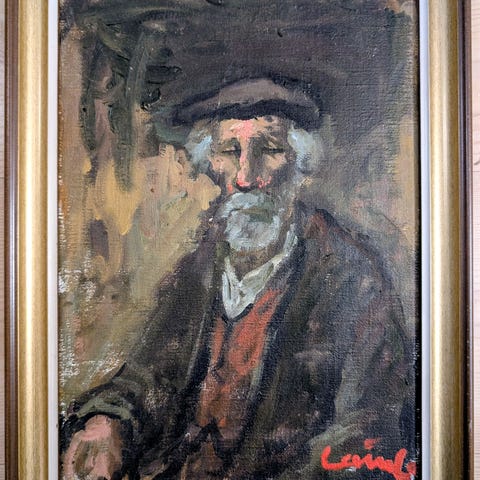 Olavi Laineen (1922-1983) signeerattu öljyvärityö. Teos on kooltaan 80 x 64 cm, kehykset 94 x 78 cm. Teos on hyväkuntoinen, samoin laadukkaat kehykset, niissä on ikään sopivaa lievää kulumaa.