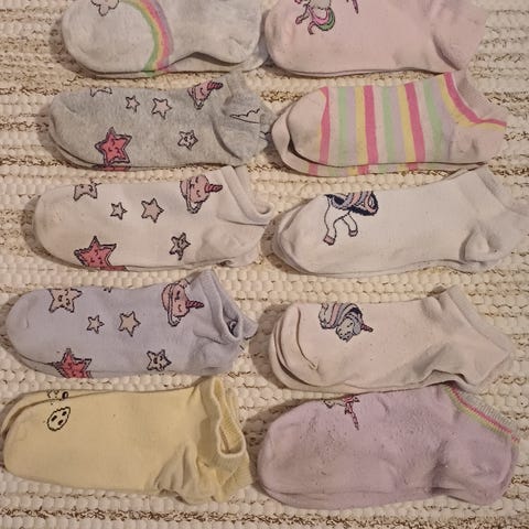 Tyttöjen söpöt palmikkoneulesukat. Jokusen kerran ehditty pitää, pohjassa hieman tummentumaa vaikka pestyt, ja joku yksittäinen nyppy. Varressa puisilta näyttävät koristenapit. Akryylisekoitelanka. Pohjan pituus n. 20cm. Söpöt talvisukat :)