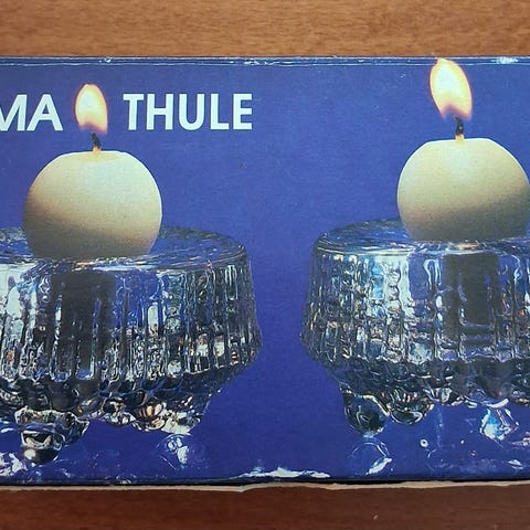 Käyttämättömät Tapio Virkkalan suunnittelemat kynttilänjalat/tuikut. Laatikko ehjä.