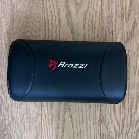 myynnissä uusi käyttämätön ferrari niskatyyny sisäänrakennetulla kaiuttimella yhdistetään älypuhelimeen kuvassa näkyvällä AUX-kaapelilla pieni passiivikautin sijoitettuna niskatyynyn sisälle H.50€