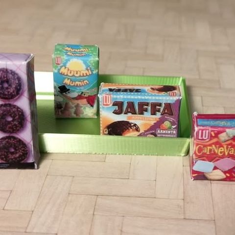 Teepakkaus ja herkkupakkaukset yhteensä 5kpl sekä vihreä tarjotin koko 52mmx32mm, korkeus 5,6mm.